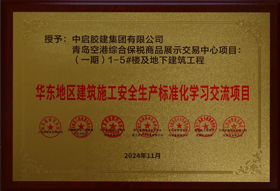 日前,華東地區(qū)建筑安全聯(lián)席會(huì)公布了2024年度“華東地區(qū)建筑施工安全生產(chǎn)標(biāo)準(zhǔn)化工地”名單,公司承建的青島空港綜合保稅商品展示交易中心項(xiàng)目(一期)1-5#樓及地下建筑工程,榮獲此項(xiàng)榮譽(yù)。這既是對(duì)公司安全生產(chǎn)標(biāo)準(zhǔn)化管理的認(rèn)可,也是對(duì)今后持續(xù)嚴(yán)把安全關(guān),爭(zhēng)創(chuàng)精品工程的鞭策。