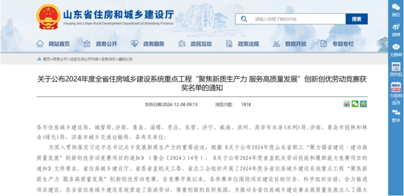 12月6日,山東省住房和城鄉(xiāng)建設(shè)廳官網(wǎng)公布了2024年度全省住房城鄉(xiāng)建設(shè)系統(tǒng)重點(diǎn)工程“聚焦新質(zhì)生產(chǎn)力 服務(wù)高質(zhì)量發(fā)展”創(chuàng)新創(chuàng)優(yōu)勞動競賽獲獎名單,中啟膠建集團(tuán)有限公司榮獲“優(yōu)勝集體”稱號,青島市市民健康中心二期市公共衛(wèi)生臨床中心項目部和青島空港綜合保稅商品展示交易中心項目(一期)1#-5#樓及地下建筑工程項目部被評為“優(yōu)勝項目部”稱號。